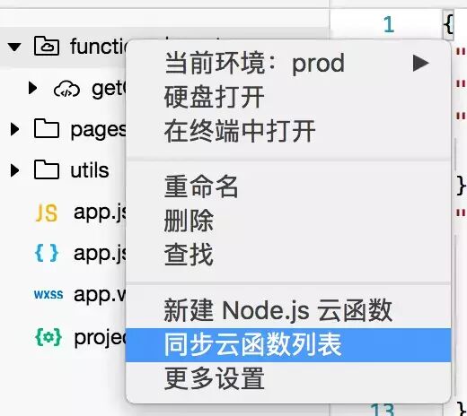 2,右键点击functions,点击同步云函数列表