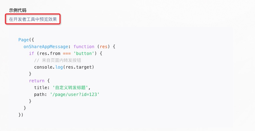 参考文档的示例:https://developers.weixin.qq.com/miniprogram/dev/reference/api/Page.html#onShareAppMessage-Object-object