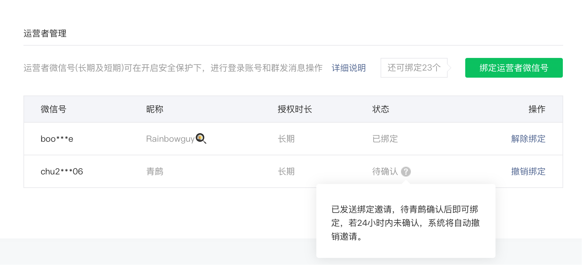公众号绑定其他运营者,已发出邀请,但对方没有收到邀请怎么办?