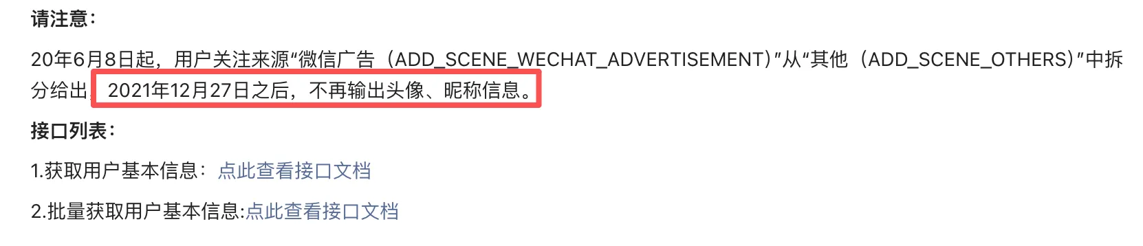 https://developers.weixin.qq.com/doc/service/api/usermanage/userinfo/api_batchuserinfo.html 为什么服务号拿到用户的openid后,用户已经关注了 但是我却拿不到用户昵称这些信息 我看批量有显示这些返回参数呢