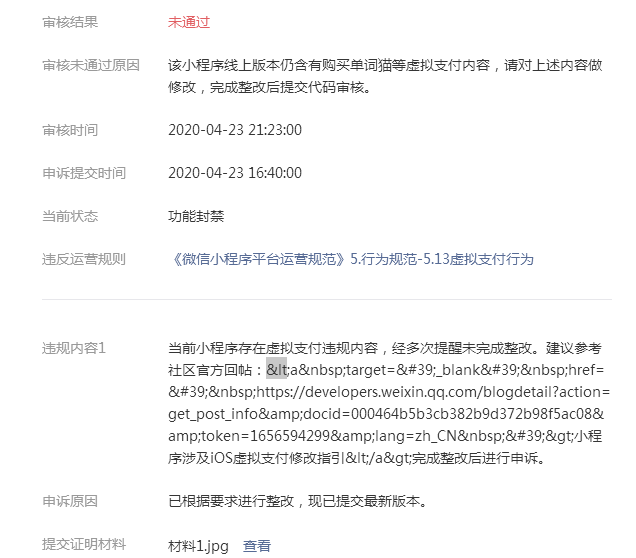 您好,这个申请未通过要怎样得新申拆,功能已安通知要求进行了整改。腾讯客服也提交了此问题,显示已跟进处理;