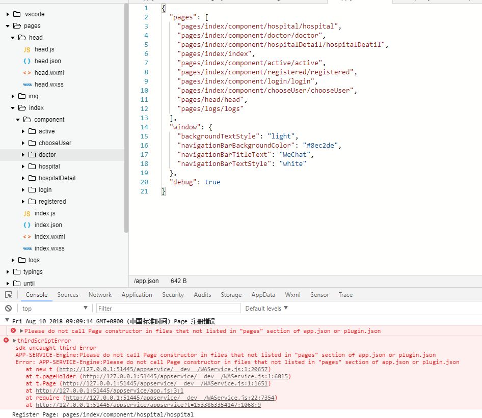 出现报错如图文件应该全部放入json里面了,每个页面的js都有page({}),json都有{},