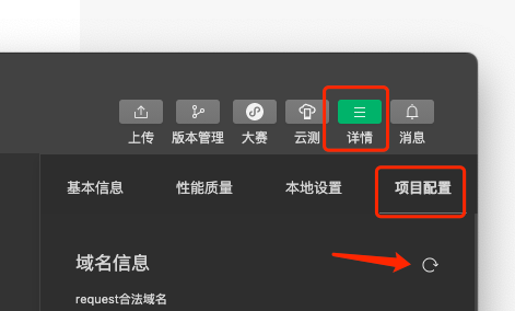 如果是刚添加域名,可以在工具 详情——项目配置 这里刷新一下再试试。