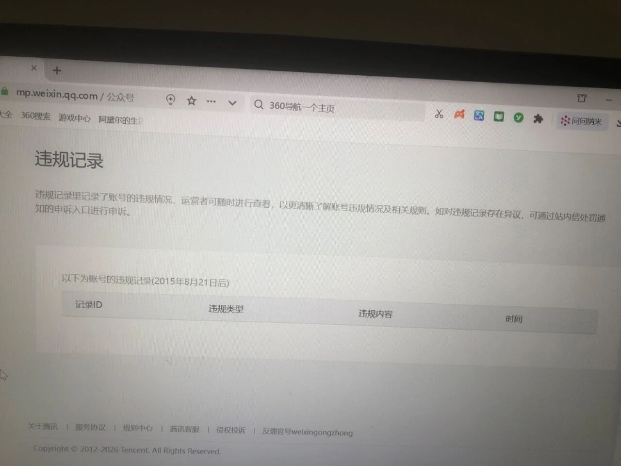 我的公众号注册时间不到二个月,为什么安全中心显示有2015年8月有违规记录