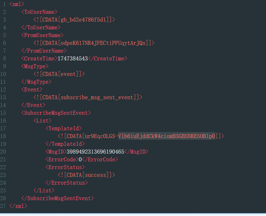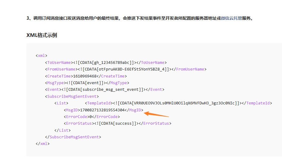 与微信回调的msgId一致