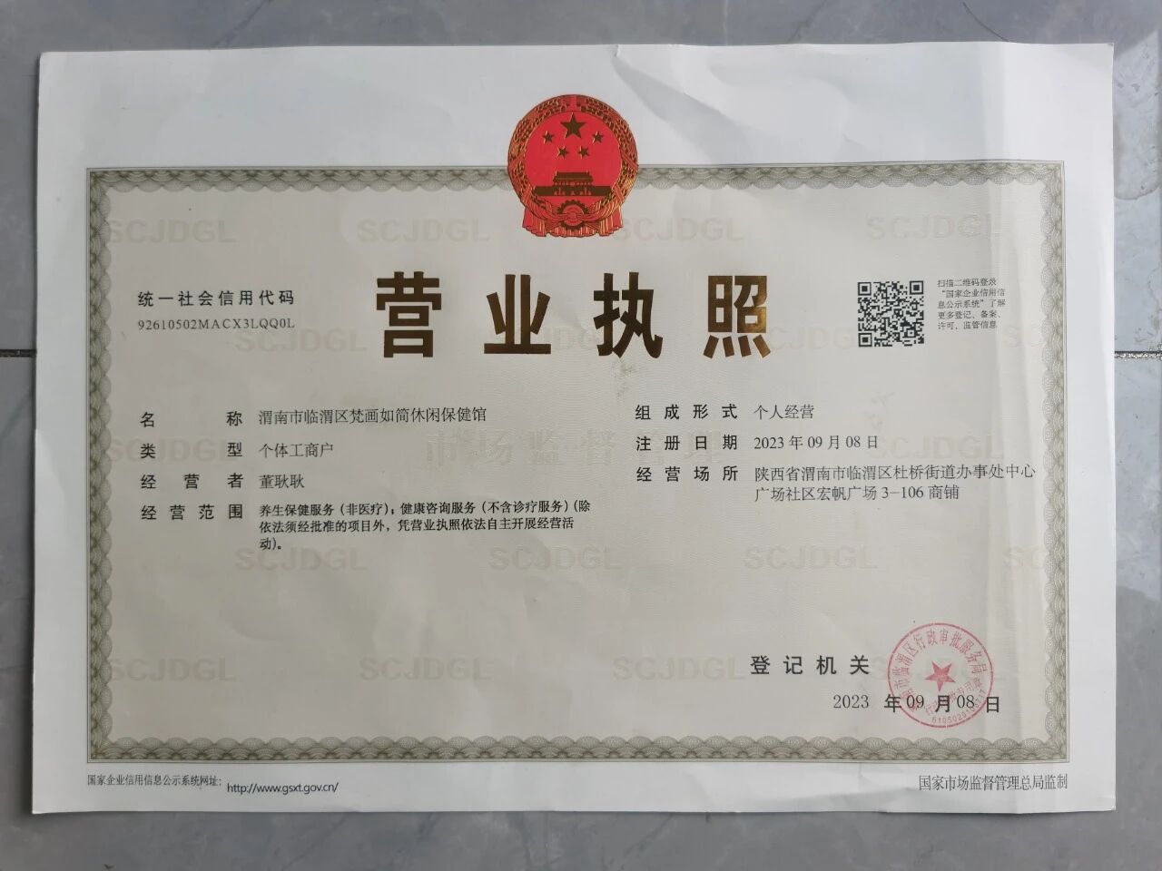 统一社会信用代码:92610502MACX3LQQ0L