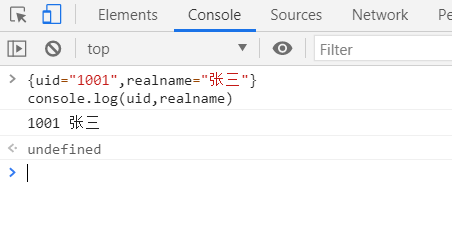{uid="1001",realname="张三"} console.log(uid,realname)