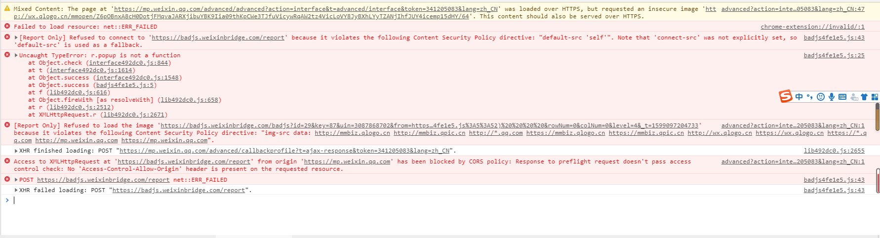 公众号修改服务器配置的时候提交没有反应,控制台出现报错信息