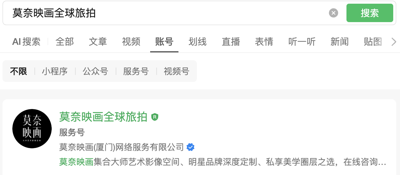 是小程序不是服务号,莫奈映画旅拍这个小程序搜索不出来