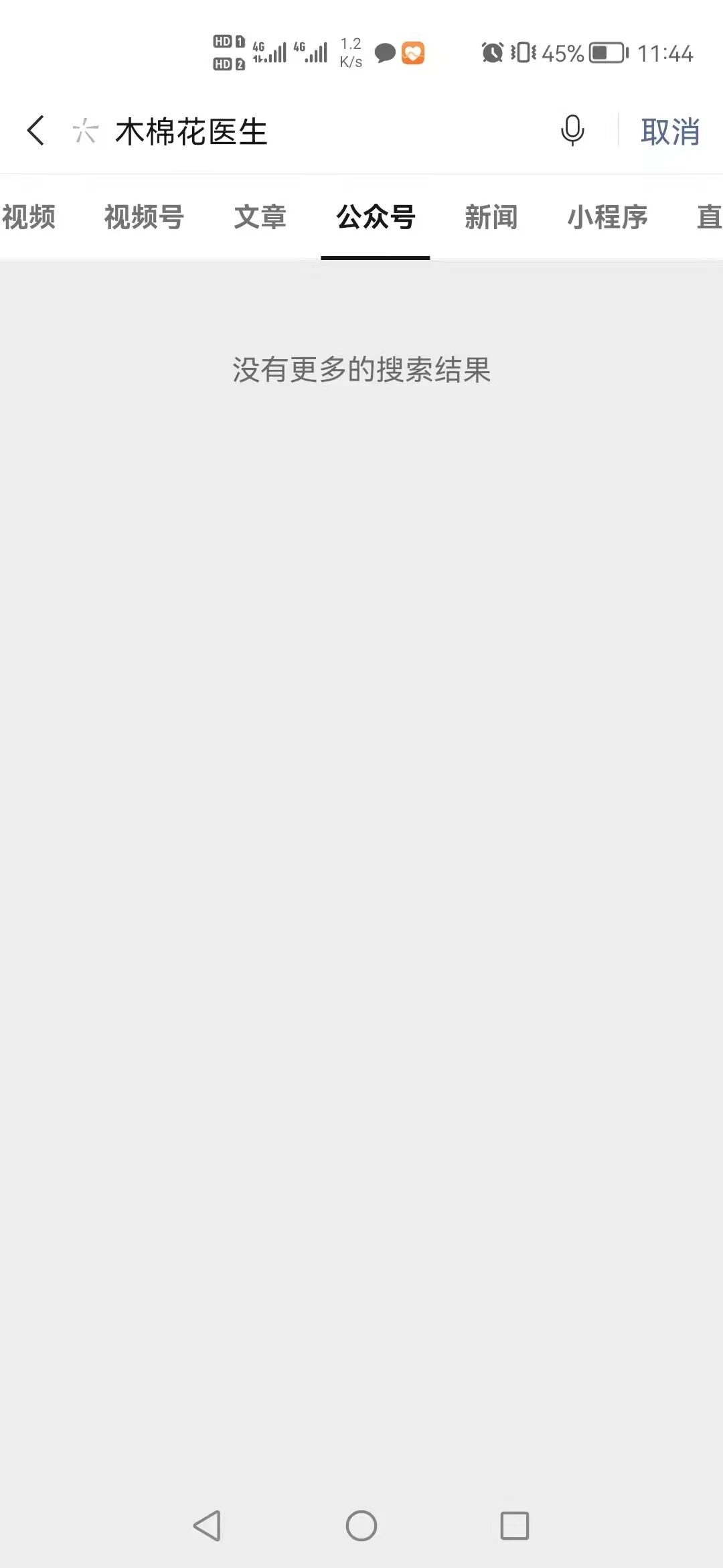 搜索不到结果。但在只输入了“木棉花”的时候会有“木棉花医生”的提示出来。就很奇怪。