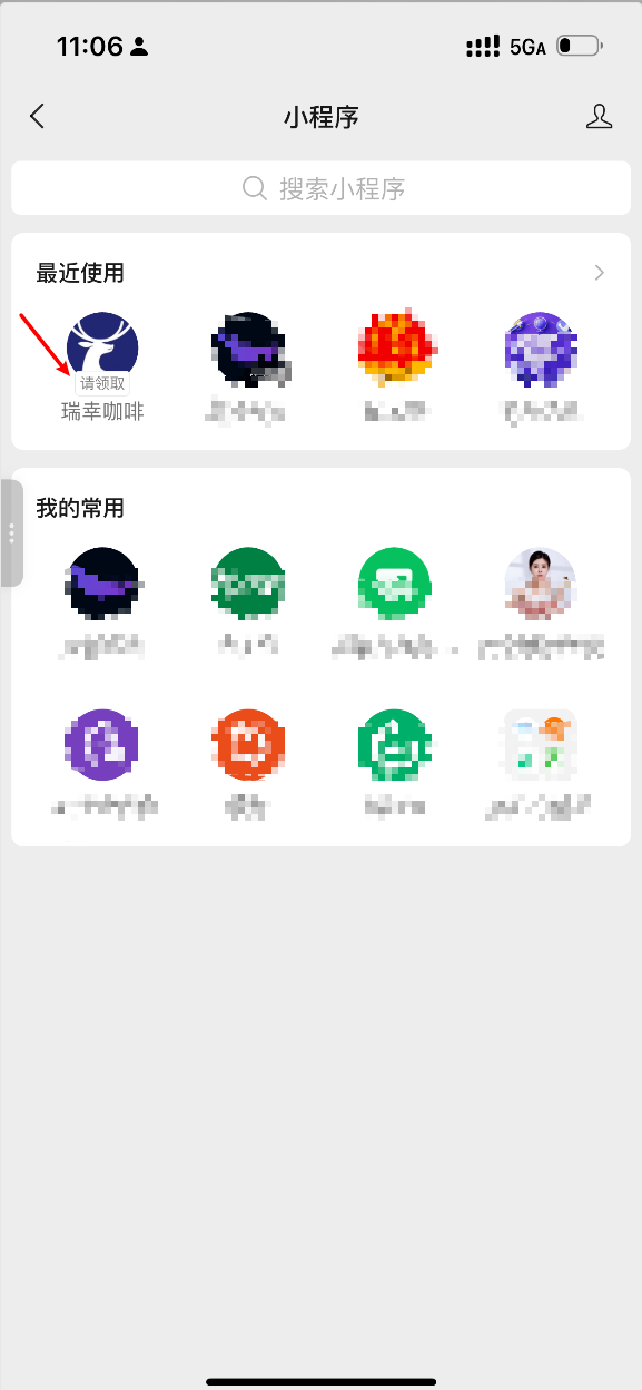 我想问下,瑞幸咖啡这里的“请领取”是怎么实现的?这行字有的用户能看到,有的看不到