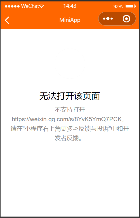 添加时出现错误,说 - 无法打开页面。不支持打开。请在“更多-小程序右上角的反馈和投诉”中中和开发者反馈。