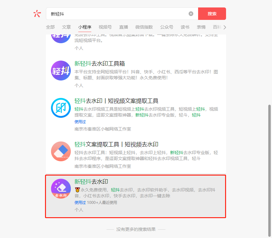 原本搜索新轻抖可以搜索到的,并且排名靠前,但是目前已经搜索不到了,所以的模糊搜索要去最底部查找。需要搜索全称才有排名,APPID:wx6005dbf74e4edfdb