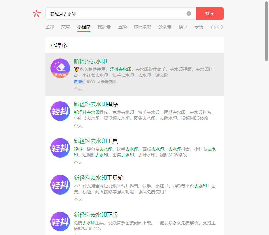 在搜一搜全部里搜索不到呢,只能通过搜索小程序才能搜索到
