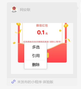 移动端分享后正常长按转发,pc端分享后长按没有转发功能,以为是引用组件的问题,但是换成原生button也是一样的效果