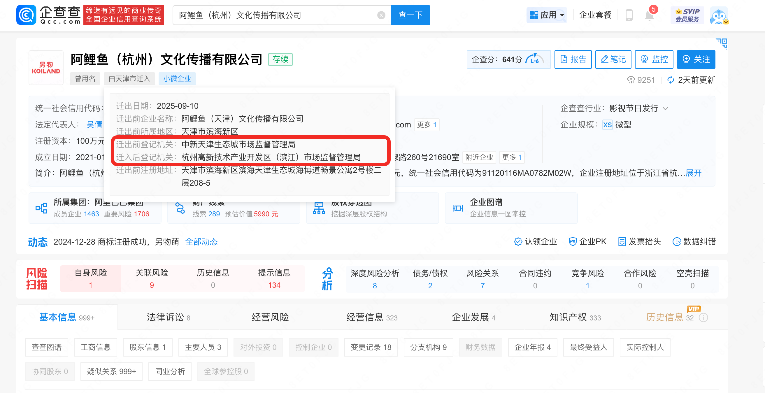 我们的小程序备案主体从 阿鲤鱼(天津)文化传播有限公司变更为阿鲤鱼(杭州)文化传播有限公司,进行了名称和属地的变更。