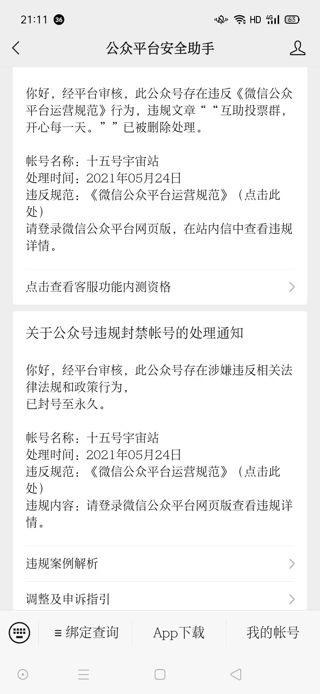 亲爱的管理员和各位大佬们: 我5月23号心血来潮接了个广告(人生第一次), 24号就因为广告被永久封号了, 广告没有涉及黄赌毒黑, 就是涉及了dy等短视频的运营和一个人的微信号。 我只发了一次就被永久封禁了, 我该怎么办啊? 这样的行为真的没办法找回号了吗? 我可以删除再也不发的,好后悔啊。