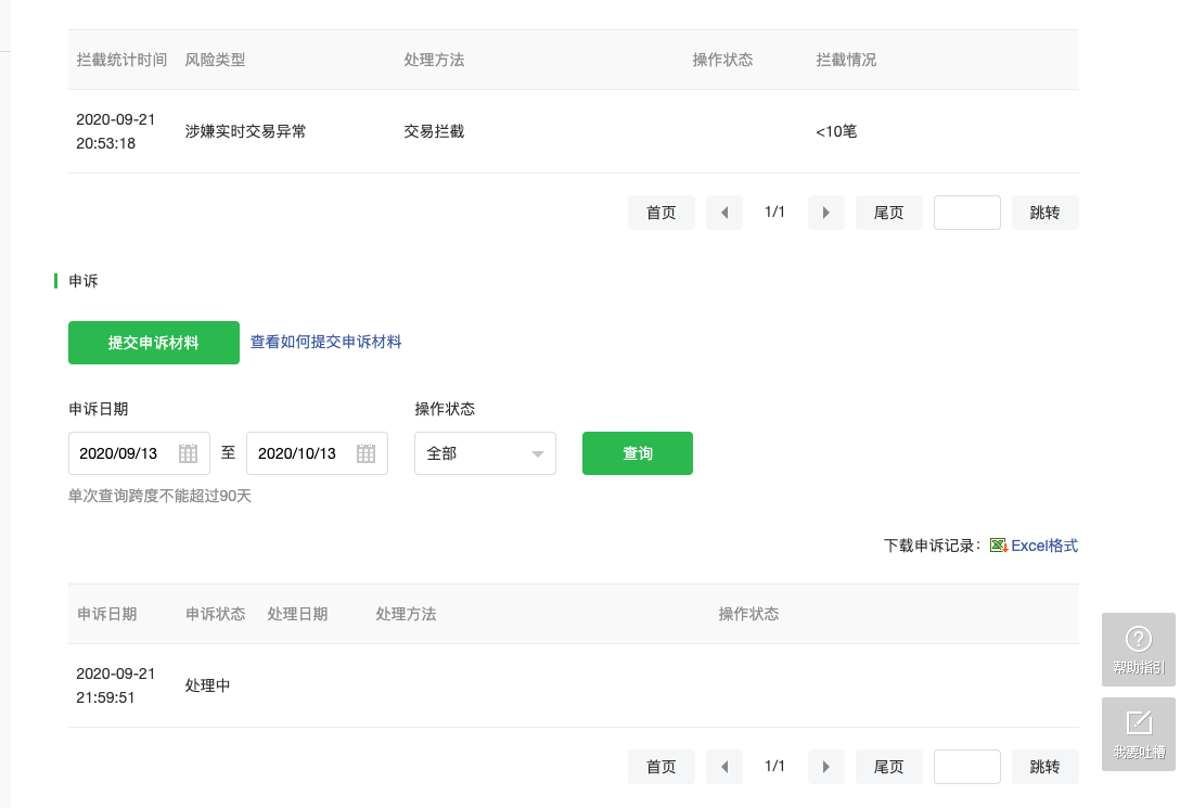 注:部分商户号因提交了不符合的申诉材料,无法再次发起申诉,请以实际页面提示为准。