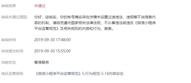 你好,审核相关疑问在这里发帖咨询哈,此贴先隐藏,请重新发帖咨询https://developers.weixin.qq.com/community/ask/index?blocktype=1&blogCategory=1