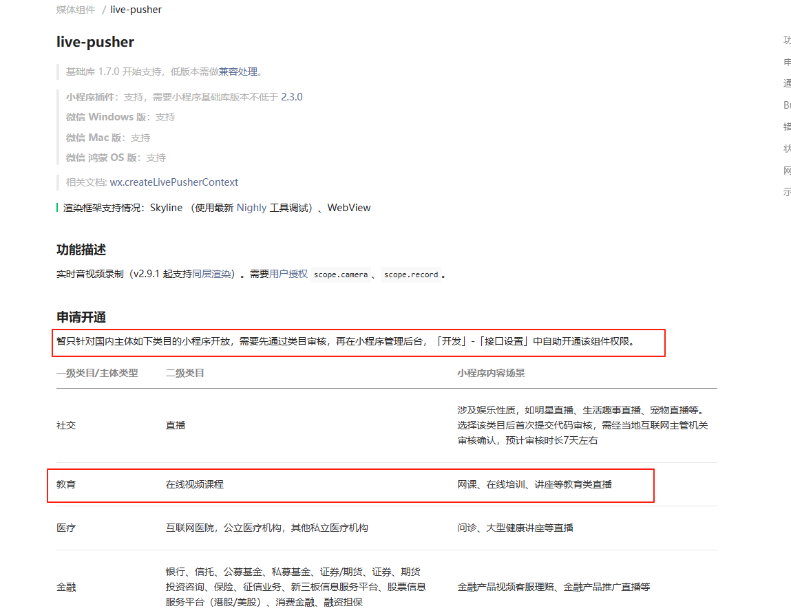 符合在校教育类目,如何开通live-pusher,谢谢
