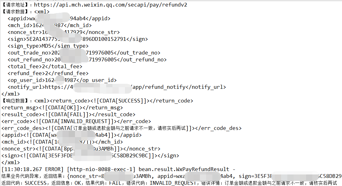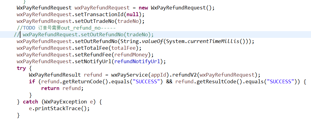 这里我的out_trade_no和out_refund_no用的是同一个订单号,是不是这里有问题,我看别人的out_refund_no是自定义生成的