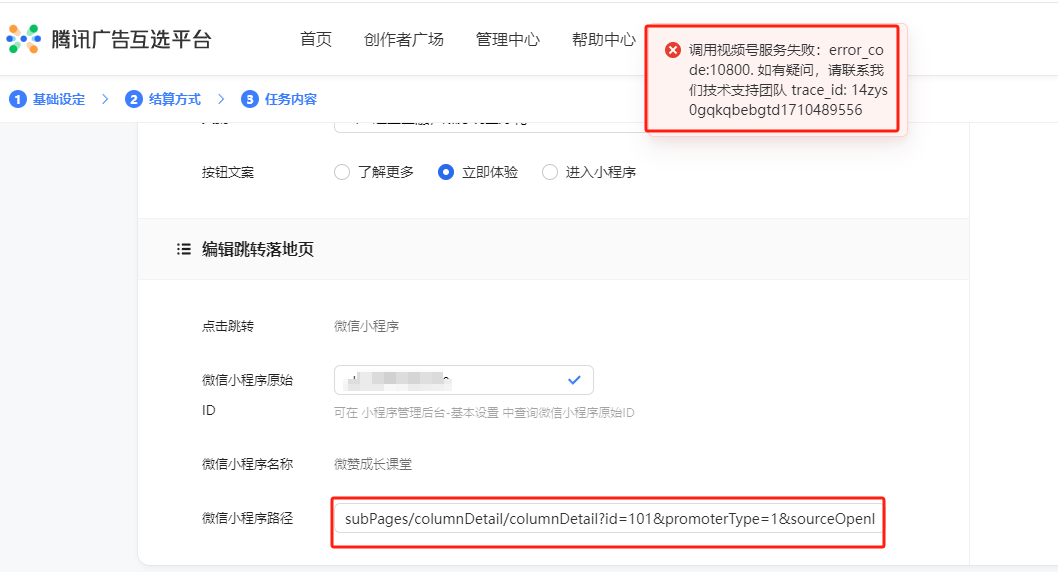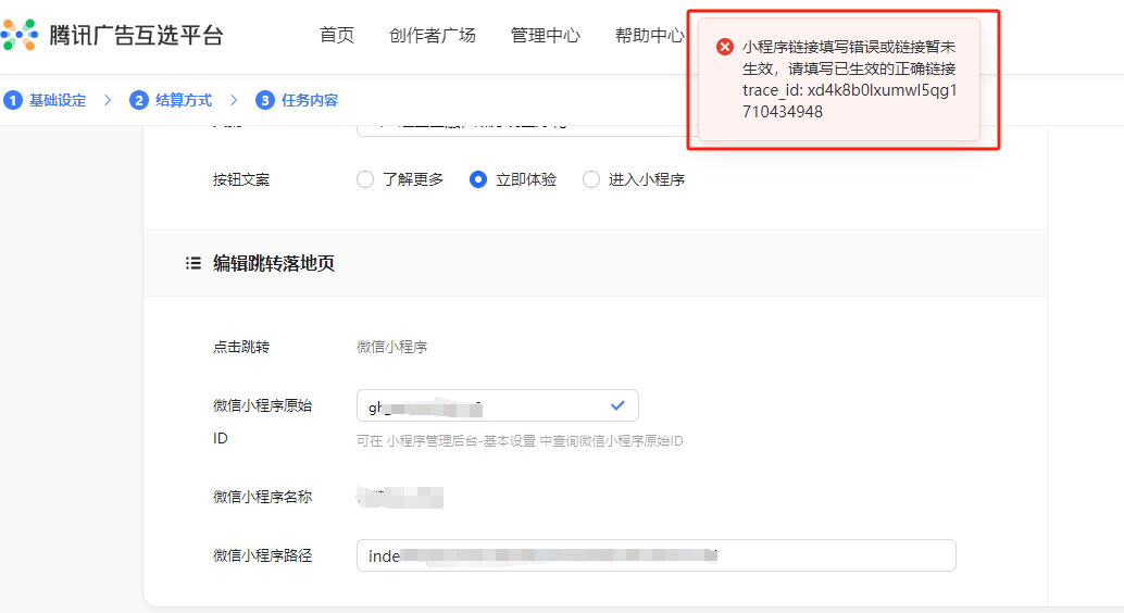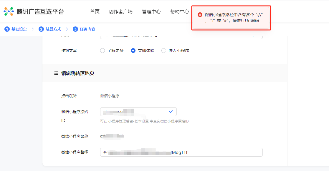 大家在腾讯互选广告的时候,有遇到这种情况吗?总提示小程序路径需要解码或是小程序页面路径未生效,要怎么处理?或是哪个地方没有用对?
