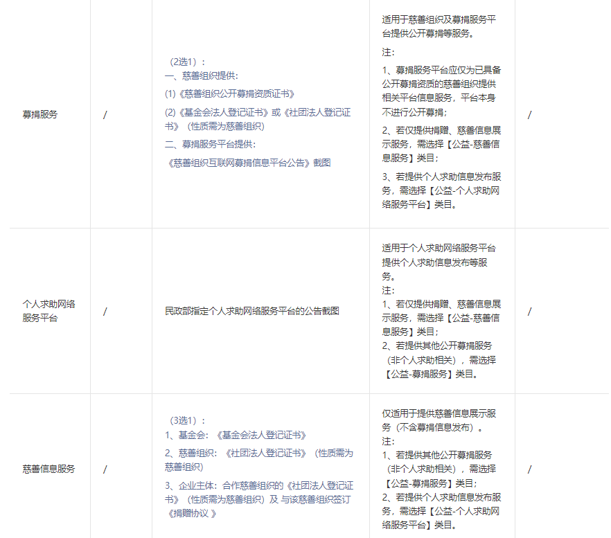可以参考下类目指引:https://developers.weixin.qq.com/miniprogram/product/material/#%E5%85%AC%E7%9B%8A