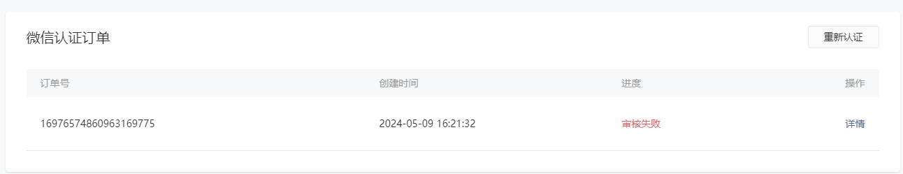 查看微信认证显示已经认证了,但是消息里面提示名称认证失败,并且微信认证订单 审核失败,这个是认证成功了 还是没认证成功?