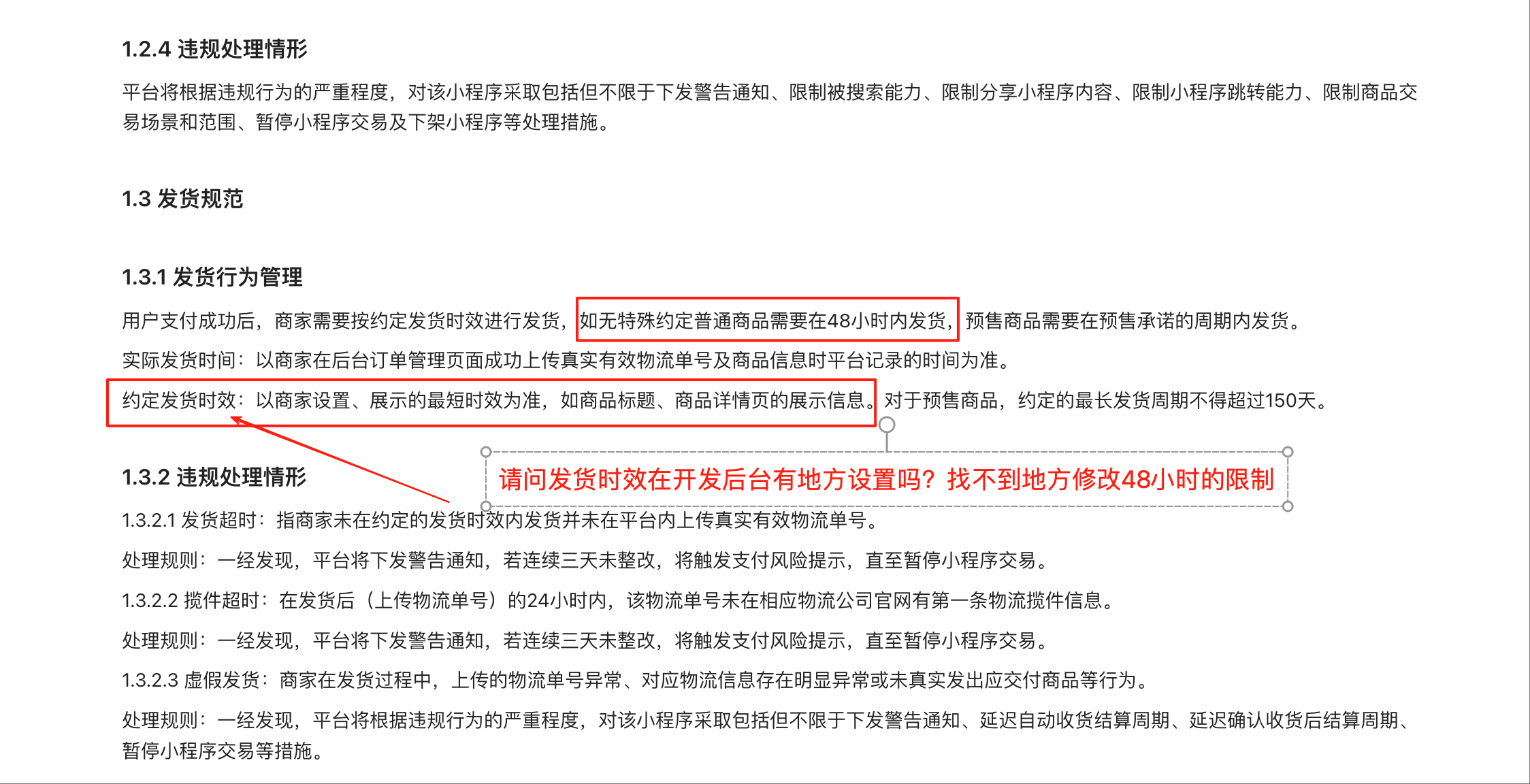 约定发货时效在哪配置的,小程序是从哪里获取到这个发货时效的?