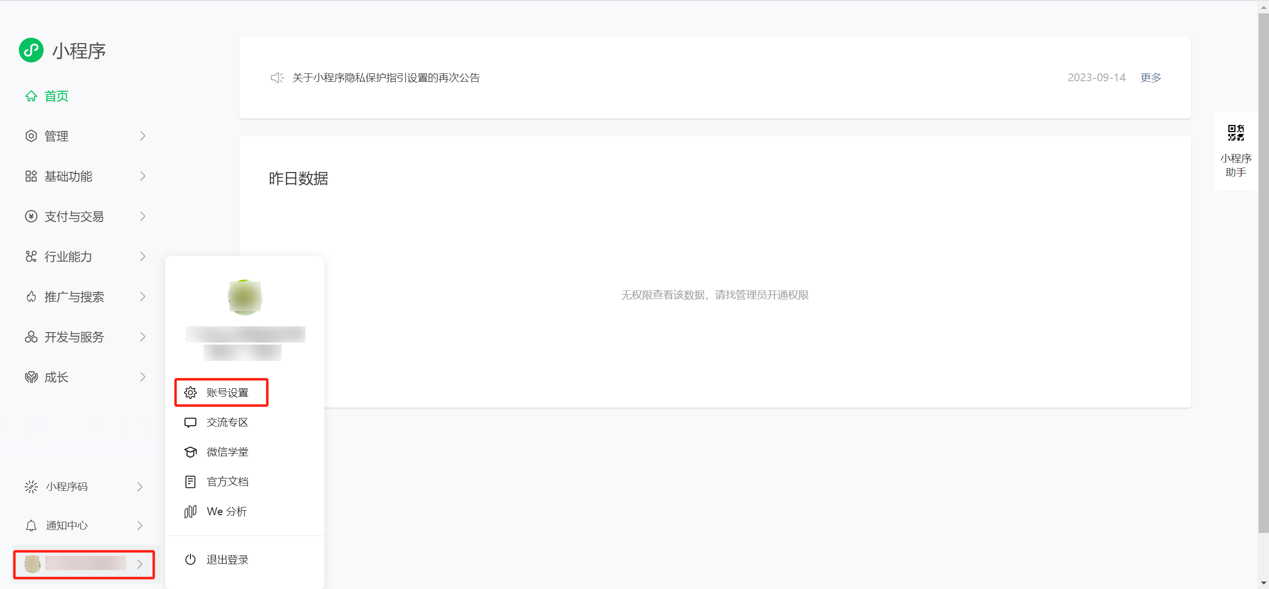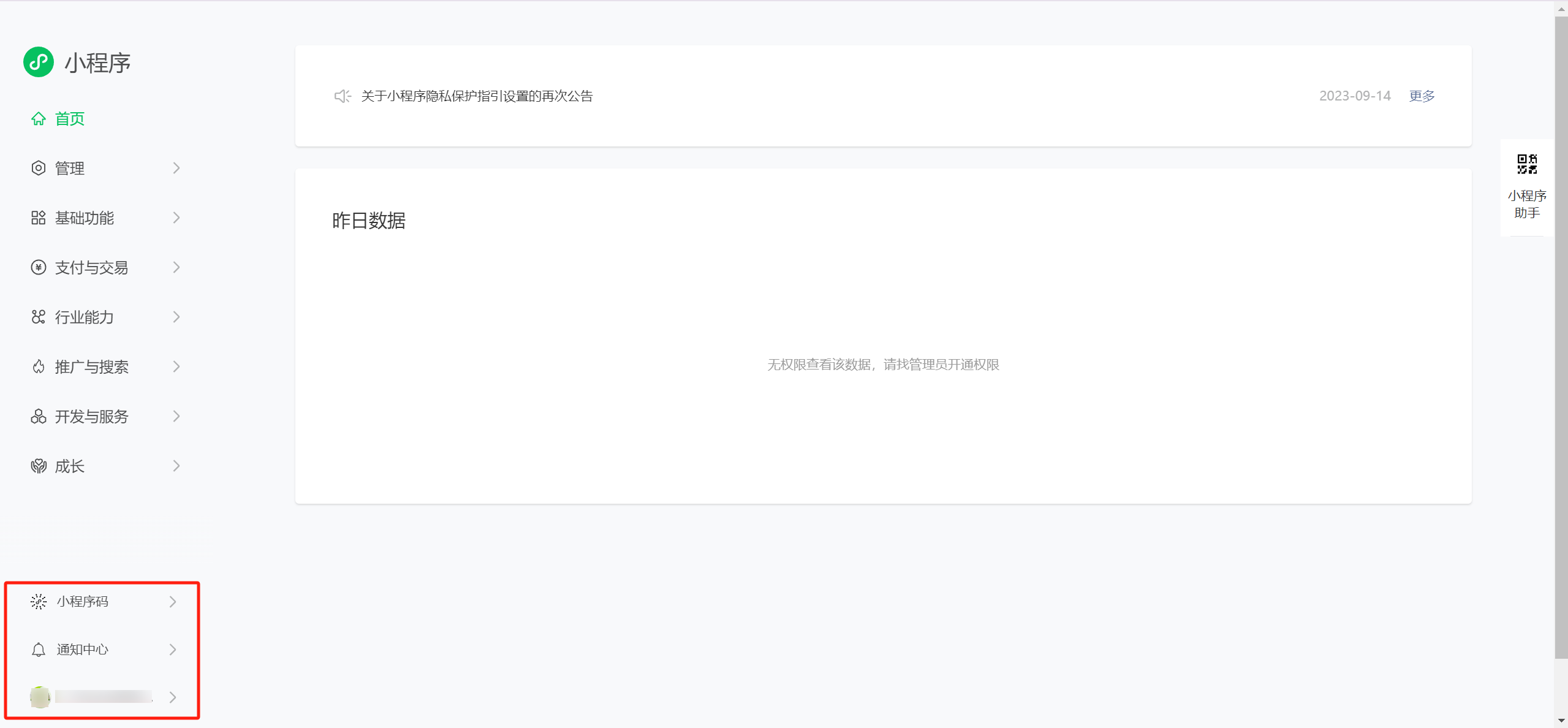 A2:移至小程序管理后台左侧导航栏下方,如下图: