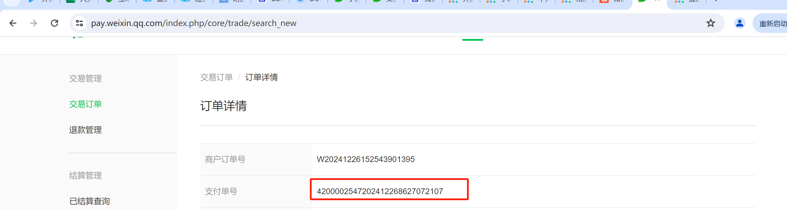 支付单号4200002547202412268627072107在商家平台能查到,状态是买家已支付,麻烦帮忙看看到底是怎么回事