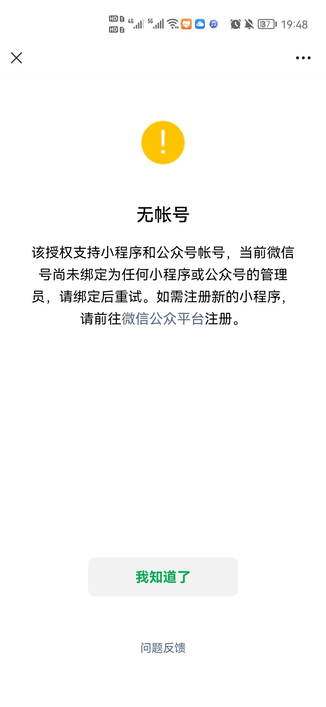 你好,请使用小程序或者公众号的管理员扫码授权,其他角色都不可以。可以前往公众号【公众平台安全助手】查一下你这个微信号旗下有哪些是作为管理员的公众号小程序。(从上面的截图看,你旗下应该没有是作为管理员的公众号和小程序)