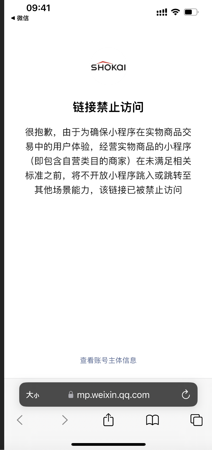 微信小程序使用'添加到桌面'功能,突然提示链接禁止访问,