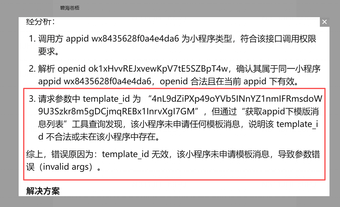 如题:在调用用工关系API报错后,使用AI诊断提示模板Id无效,实际小程序用工关系没有模板列表查询?AI使用了订阅消息的API查询后给出误导结论?