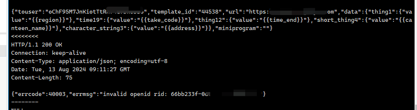 这边的access_token和商户信息没有问题的一直都这样用,用户也关注了公众号,地址也设置了白名单,但是就是一直报openid没有权限,请问有人知道吗?模版也是对的