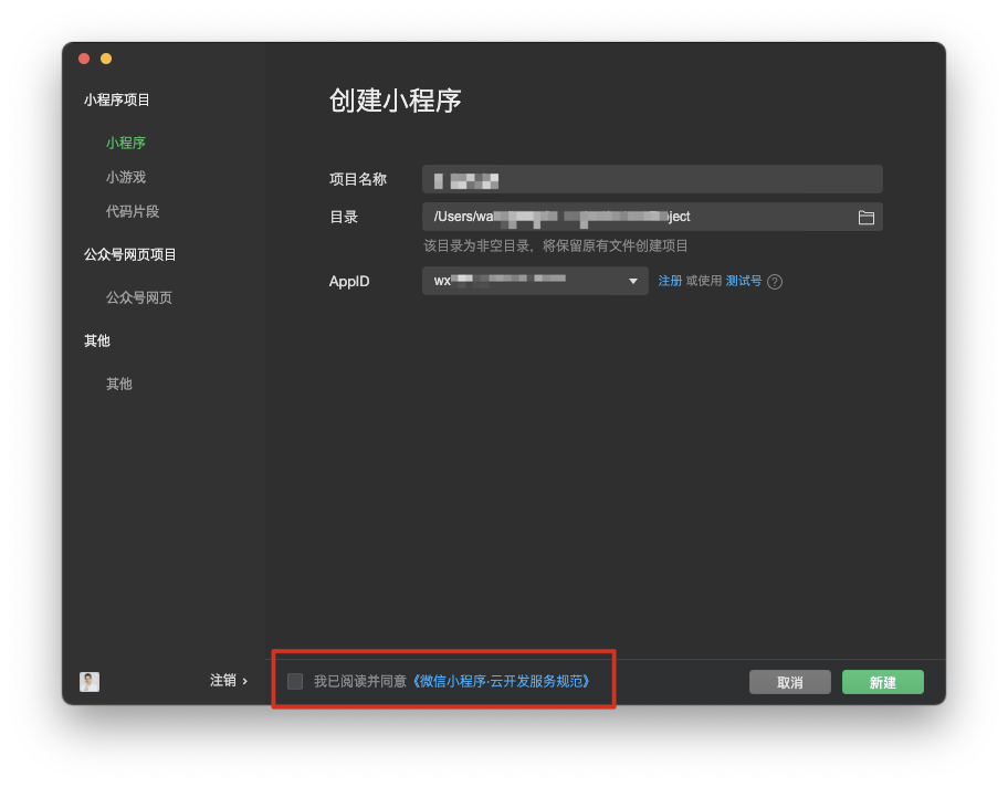 导入之前的项目,必须勾选协议,勾选后就开通了云开发能力?