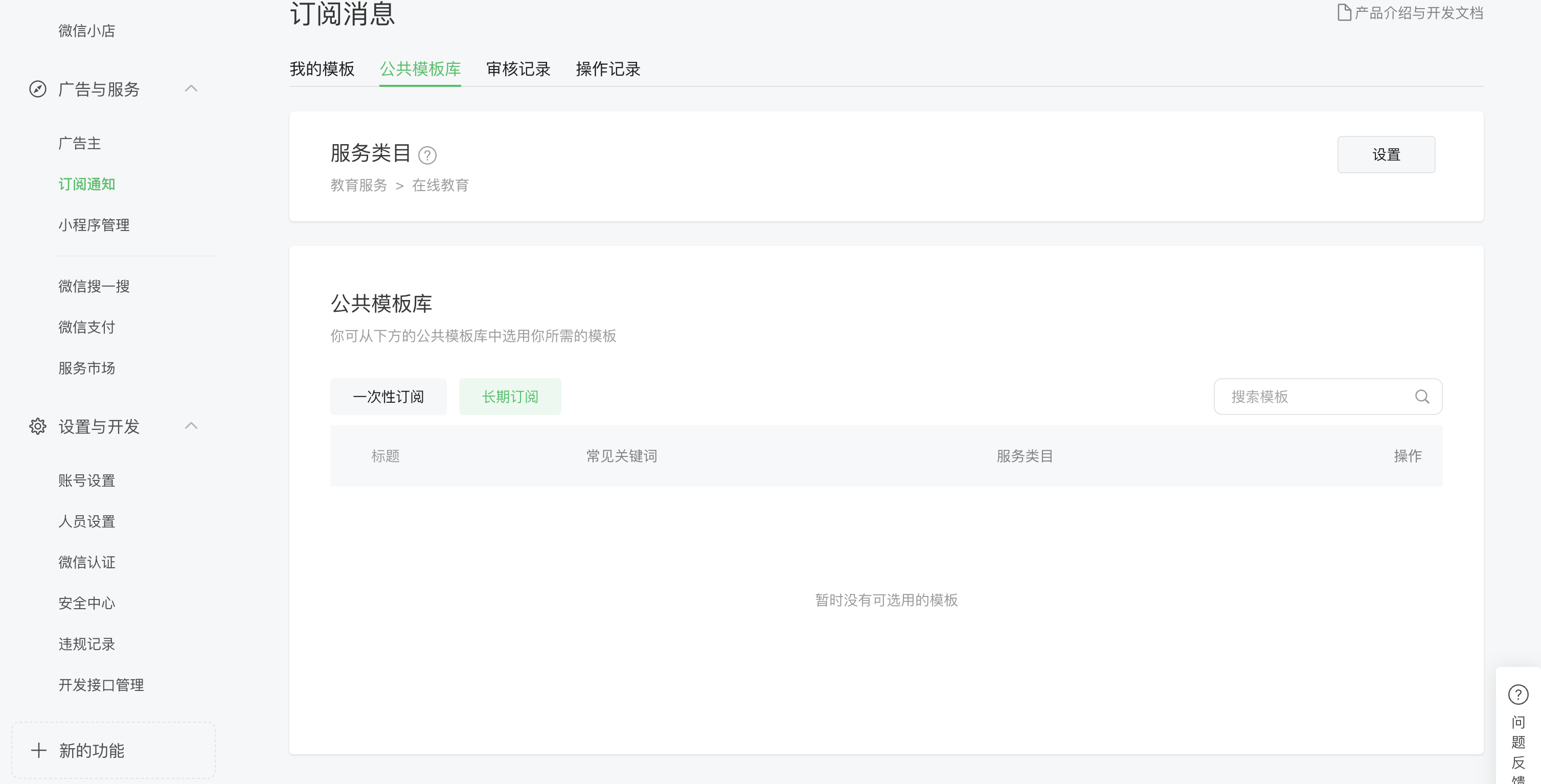 长期订阅消息目前仅支持 政务民生、医疗、交通、金融、教育等线下公共服务领域。例如: