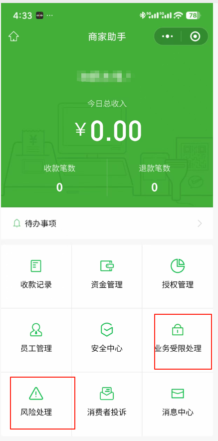 此商家的收款功能已被限制,暂无法支付。商家可登录微信商户平台/微信支付商家助手小程序/经营账户页面查看原因和解决方案。