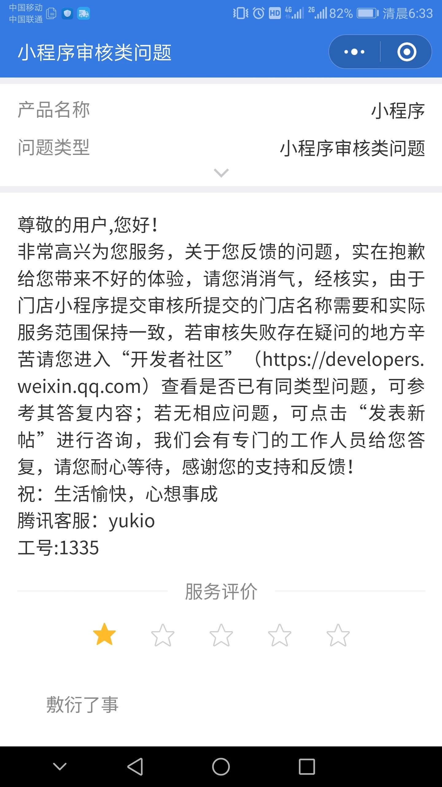 我的经营范围是有这一个项目的,小程序门店审核人员不给通过,腾讯客服人员敷衍了事,这里不会也是踢皮球吧???