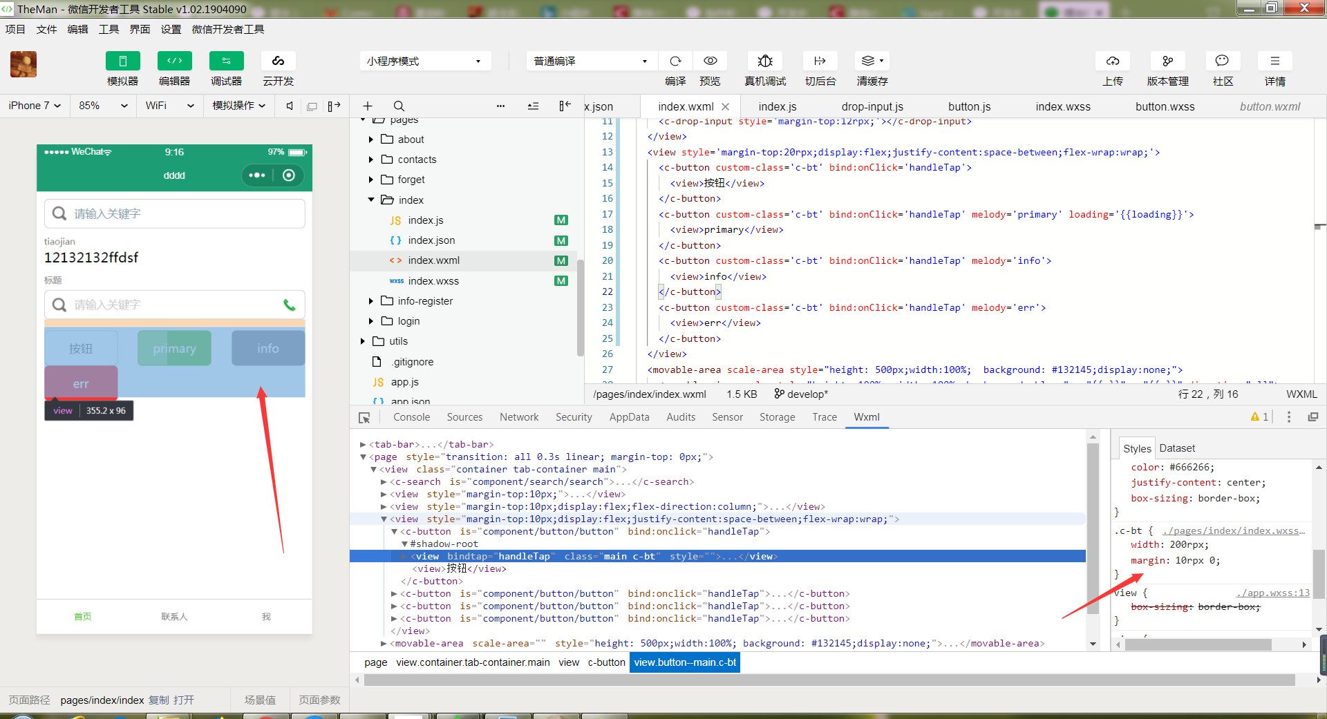 当自定义的组件由外部传入margin时,外容器的高度不正确,然后两个组件的间距也没出来,模拟器上和手机上都不行