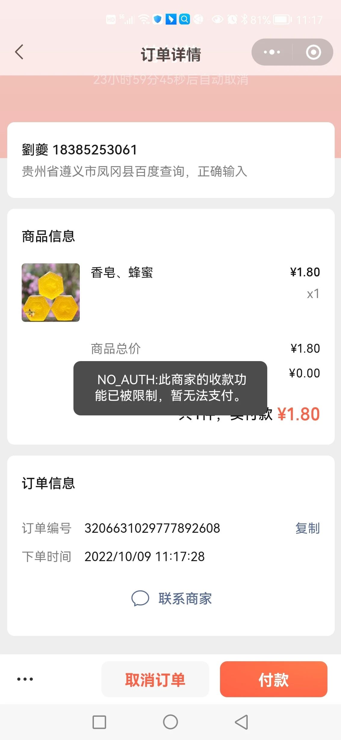 客人支付时显示,上家收款功能被限制,应该怎么处理?