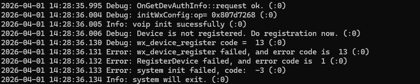 现象:同一个宽带,其它都没变,昨天能呼叫成功的,今天提示设备注册失败