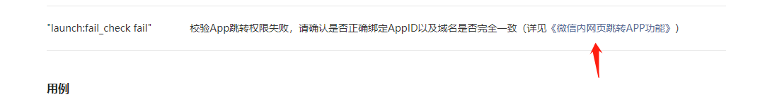 4、点击跳转时,微信开发者工具是正常弹出了跳转app的弹框,但是真机上,却触发了error事件,提示launch:fail_check_fail。