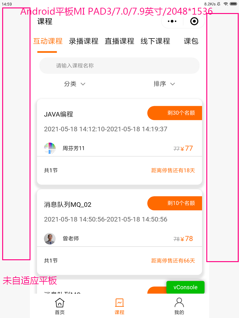 在开发小程序时微信工具能适配各种屏幕大小,使用真机测试时发现在android MI PAD3 、7.0/7.9英寸/2048*1536宽不能全屏,两边空白区很多?