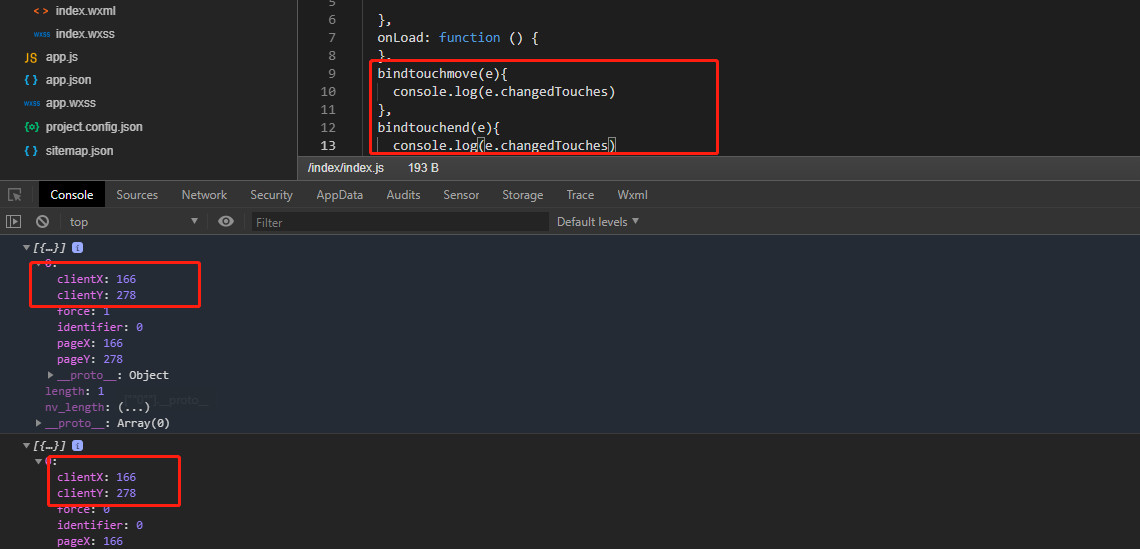 在当前开发者工具中,点击一次触发的 touchstart 事件和 touchend 事件中的数据不一致(并没有进行移动,就是一次普通的点击)