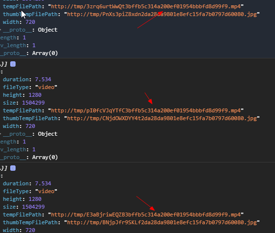 三个完全相同的照片,给出的临时地址都不一样,这样该如何判断用户是不是上传了相同的视频,并做出处理呢?只能用其他的duration、size来判断?不是应该同一个视频缓存地址一样吗?