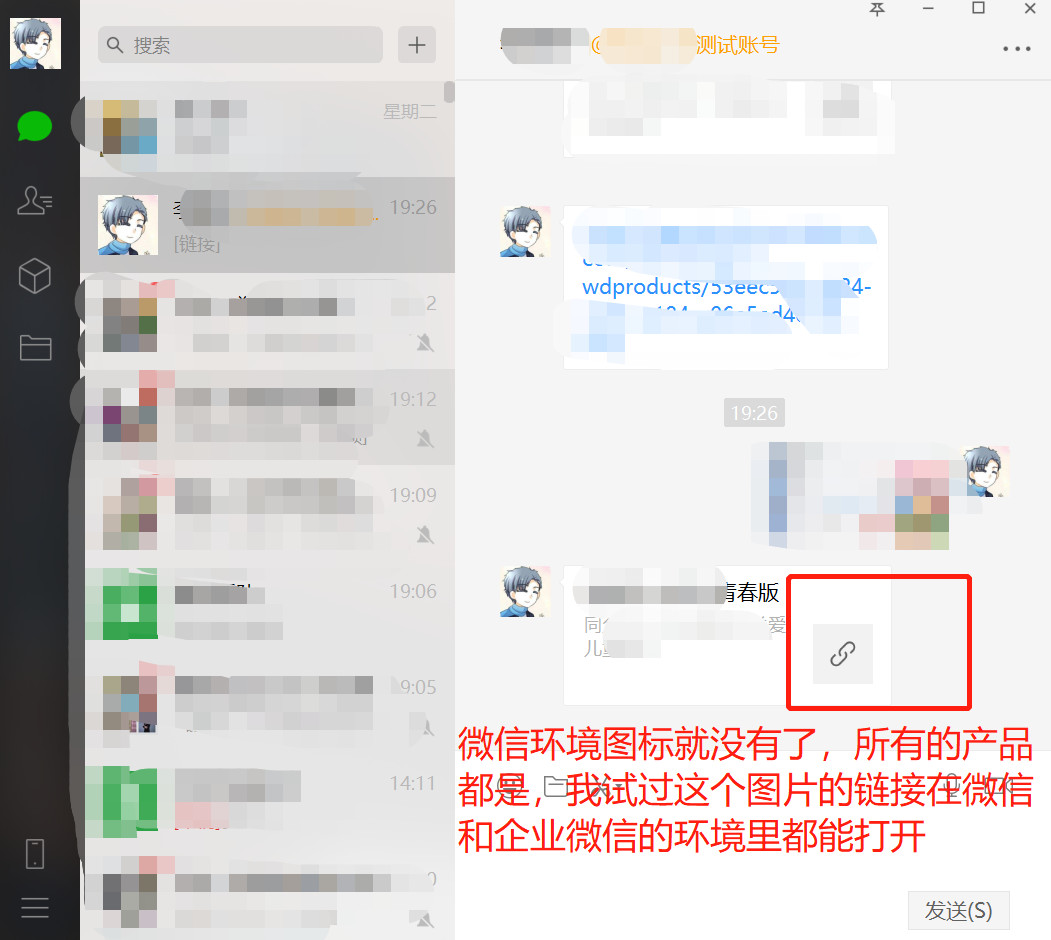 还有一个奇怪的现象 mac 分享给window 图片是有的 window 分享给 window 或者 window 分享给 mac 在微信消息记录中图片都是没有的,但是手机上在微信端消息记录里 分享的图片都有,麻烦哪位大佬 或者官方大佬有遇到或者知道这个问题给解释一下,分享出来的效果图如下: