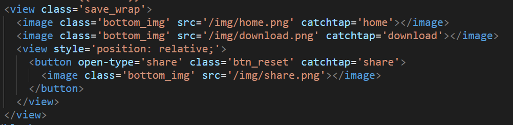 class为save_wrap的view里面button之外的任何地方点击,都会响应到button上面。尝试过设置hover-stop-propagation没有效果。经过多次尝试发现,button的作用范围会一直往外扩散,到最近一级position为absolute/fixed/relative的视图才会终止。所以才勉强有了下面的修补方案
