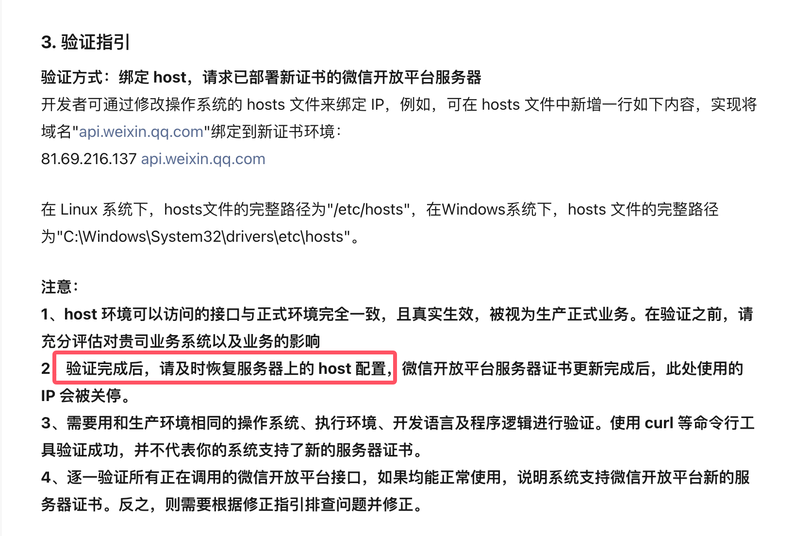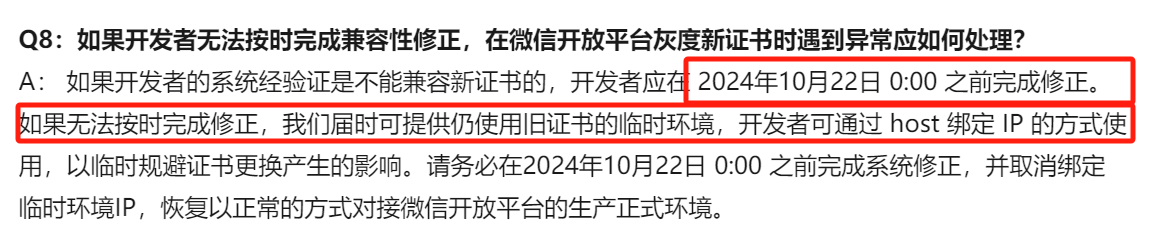 根据公告进行微信开放平台新服务器证书兼容性验证https://developers.weixin.qq.com/community/develop/article/doc/0002025ca6c3a8c4d7d1afbaf6b013?page=3#comment-list, 服务器为CentOS6.9,在hosts文件中增加81.69.216.137 api.weixin.qq.com, 2024-09-30 16:59:00之前调用https://api.weixin.qq.com/cgi-bin/component/api_component_token没有问题, 从2024-09-30 17:59:08后调用返回system error