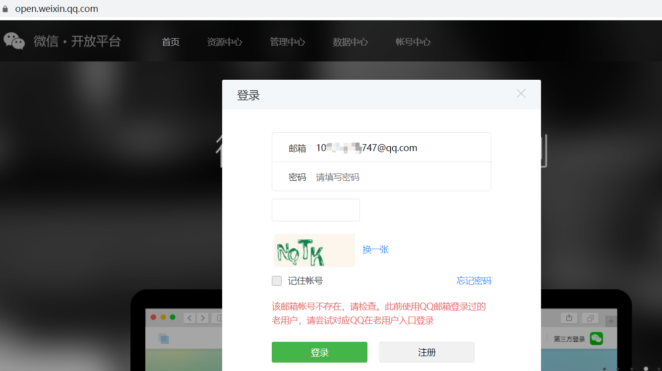 1)已绑定开放平台的邮箱;